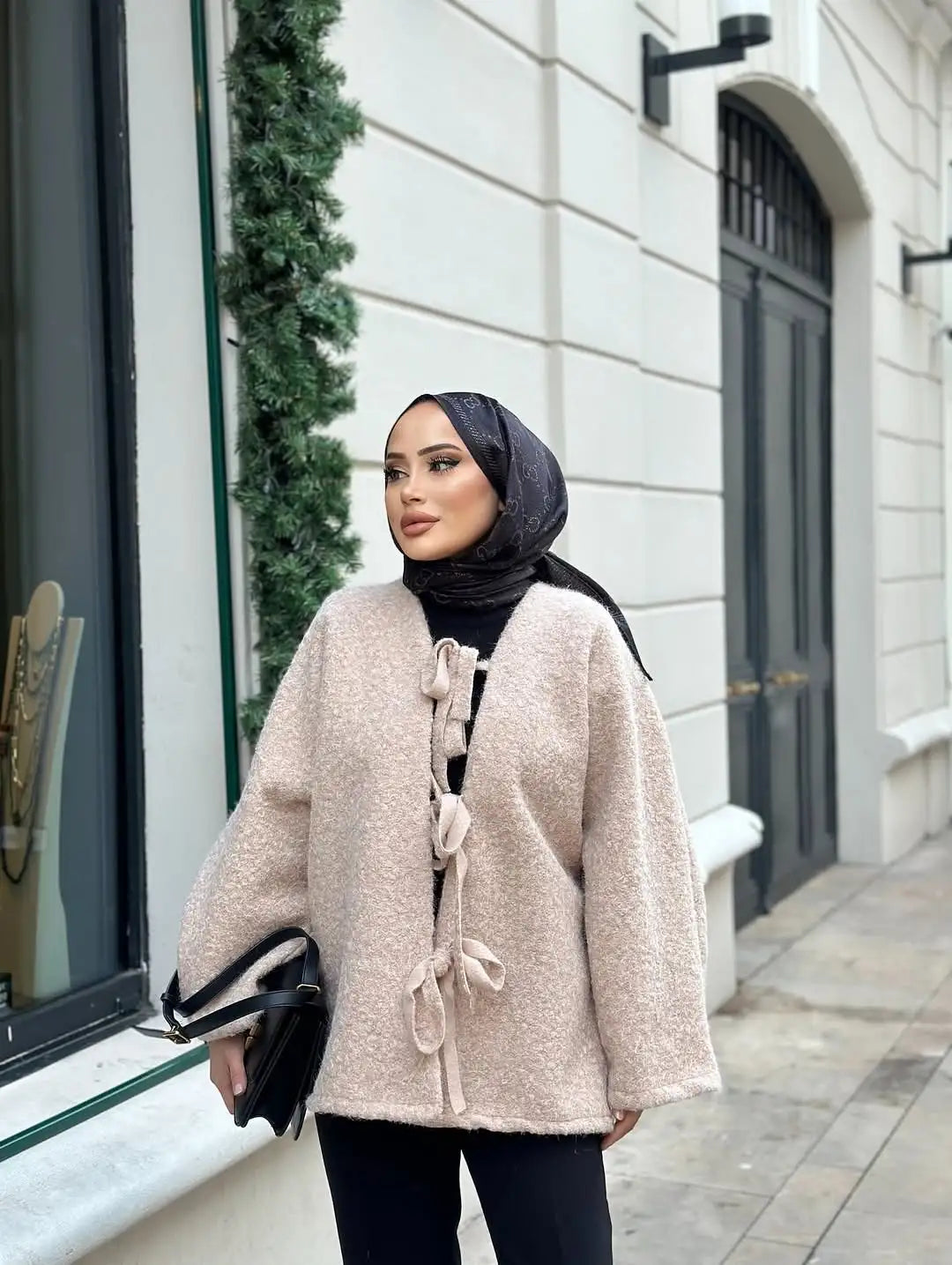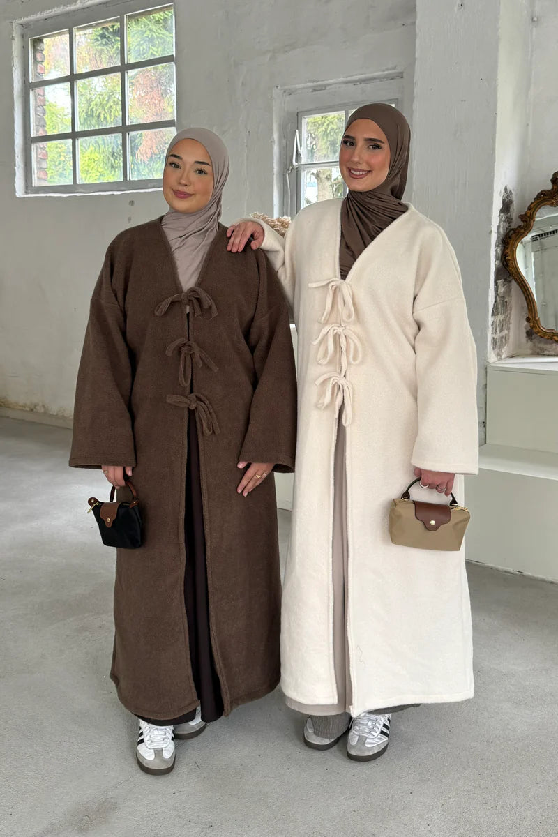 Manteau Long en Laine avec Ceinture – Élégance Modeste