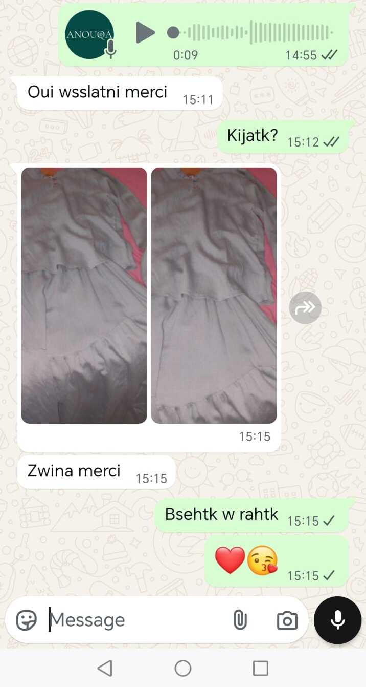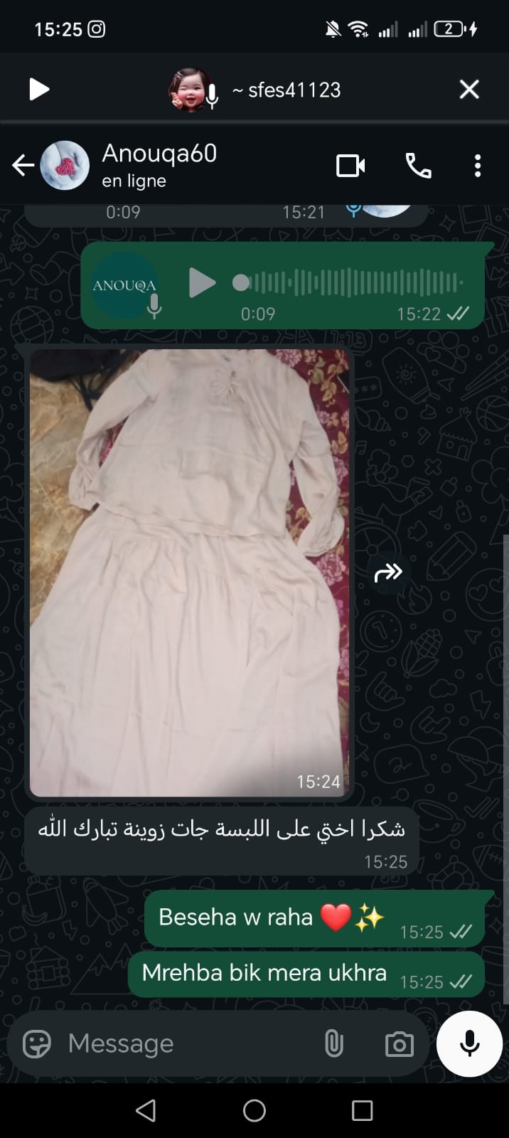 "شكرا اختي على اللبسة جات زوينة تبارك الله" ✨💖