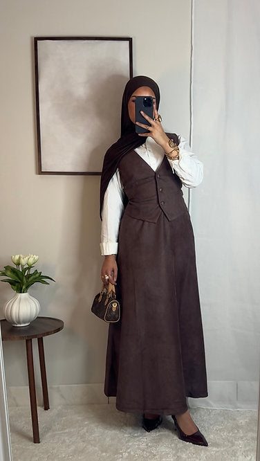 هذا الطقم الأنيق المكوّن من صديري أنيق وصاية طويلة بتصميم يجمع بين الاحتشام والرقي في تناغم مثالي.