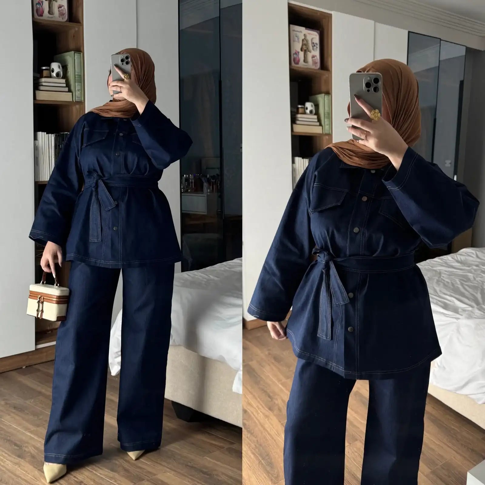 اكتشفي طقم Denim Classy المصنوع من جينز فاخر 100٪ قطن طبيعي يمنحك إحساسًا بالراحة الفائقة والنعومة طوال اليوم، مع لمسة من الفخامة الهادئة.